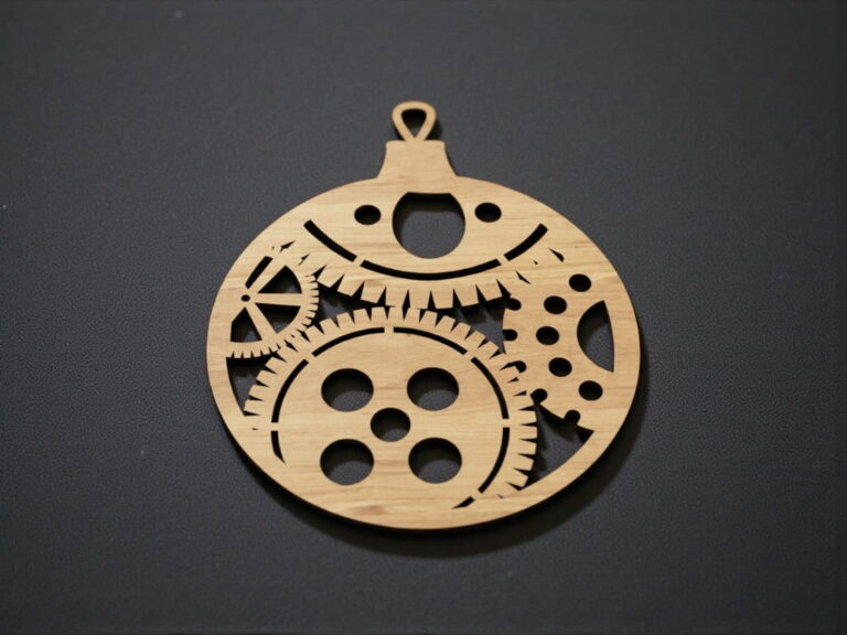 Laser Cut Christmas Ornament with Steampunk Gear Design