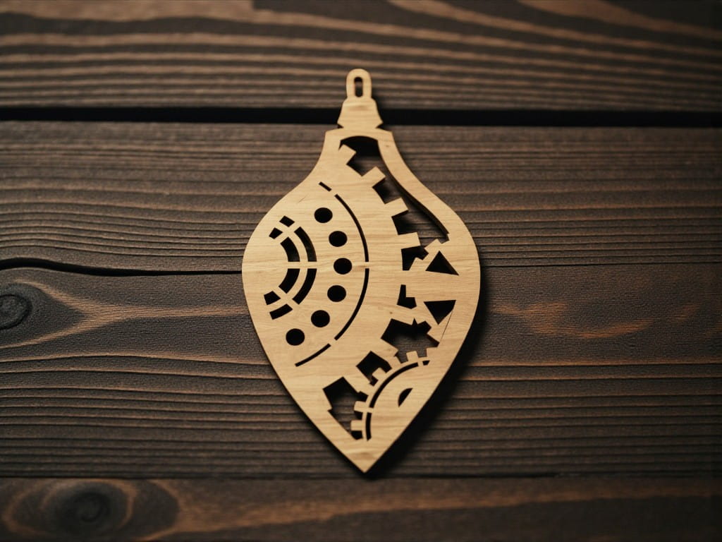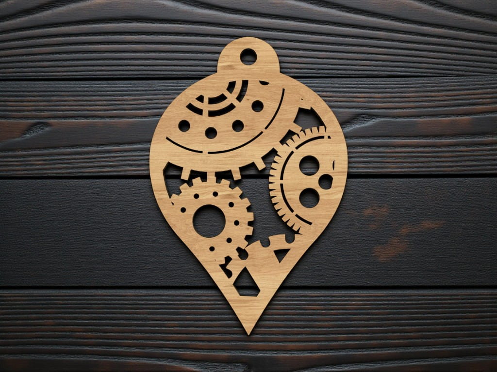 Laser Cut Teardrop Ornament with Steampunk Gears Design