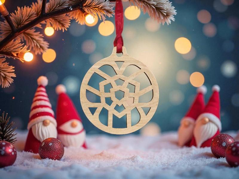 Laser Cut Traditional Christmas Bauble with Steampunk Gears Design