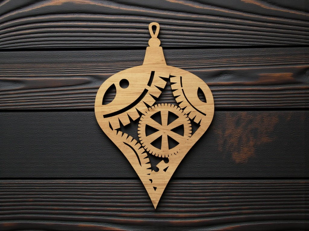 Laser Cut Christmas Bulb Ornament with Gears Design