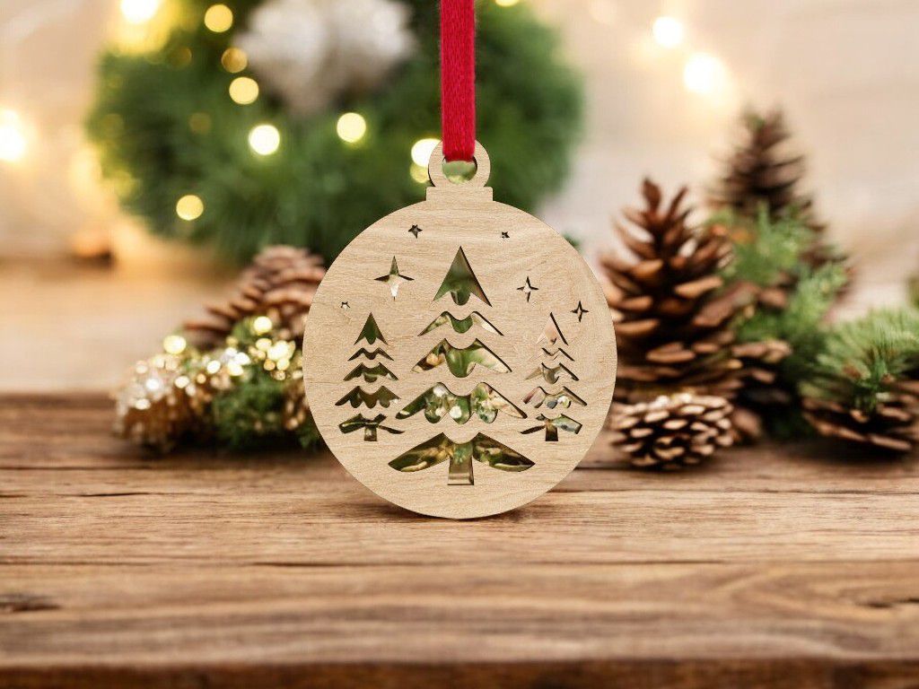Laser Cut Christmas Tree Bauble Decoration Vector