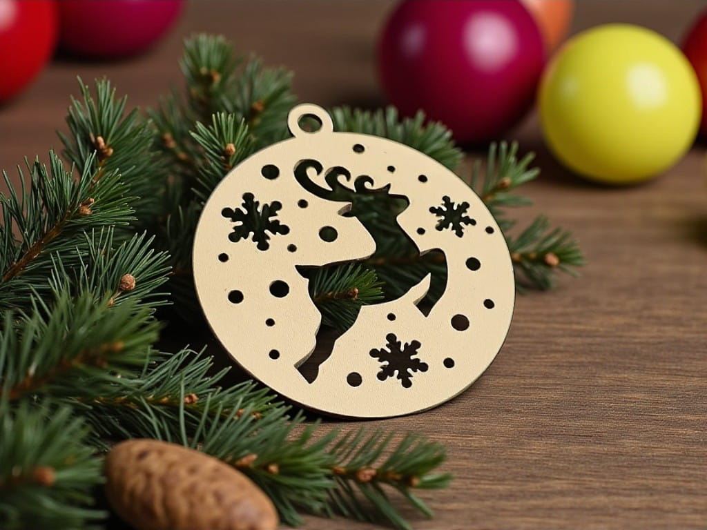 Laser Cut Reindeer and Snowflake Christmas Tree Ornament