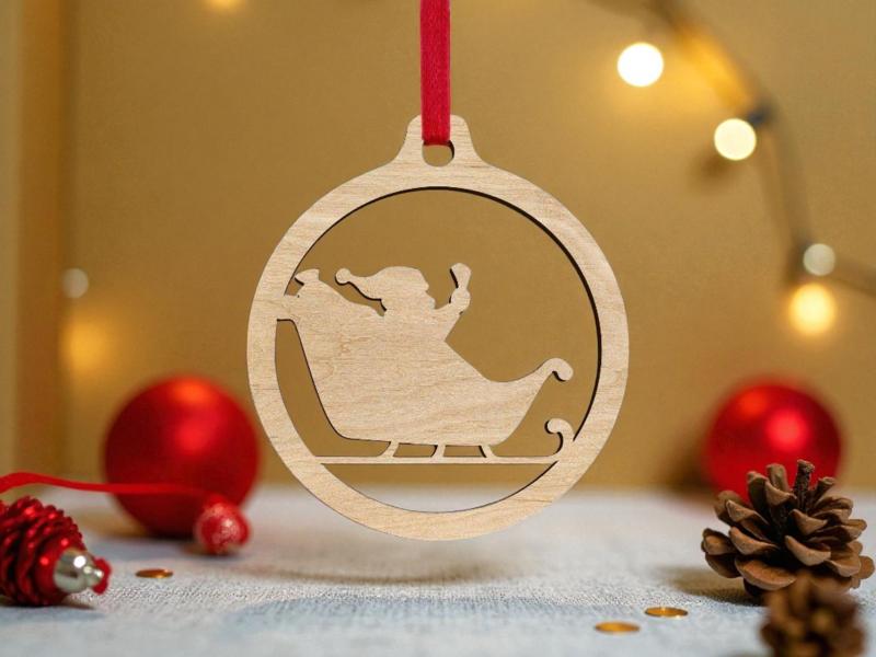 Laser Cut Santa Claus Sleigh Bauble Free Download