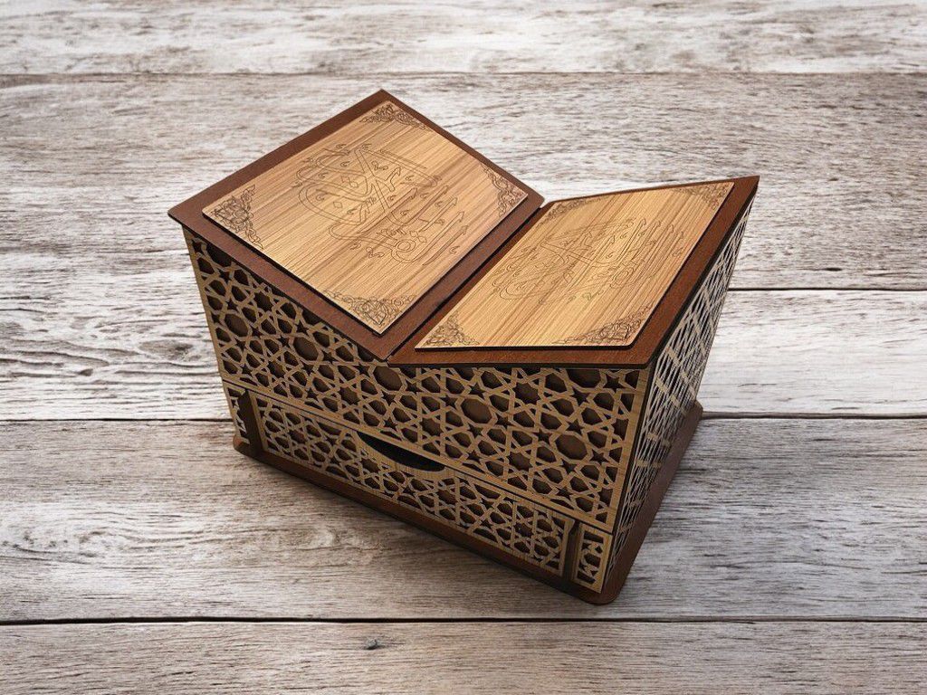 Laser Cut Decorative Quran Box with Rehal Vector