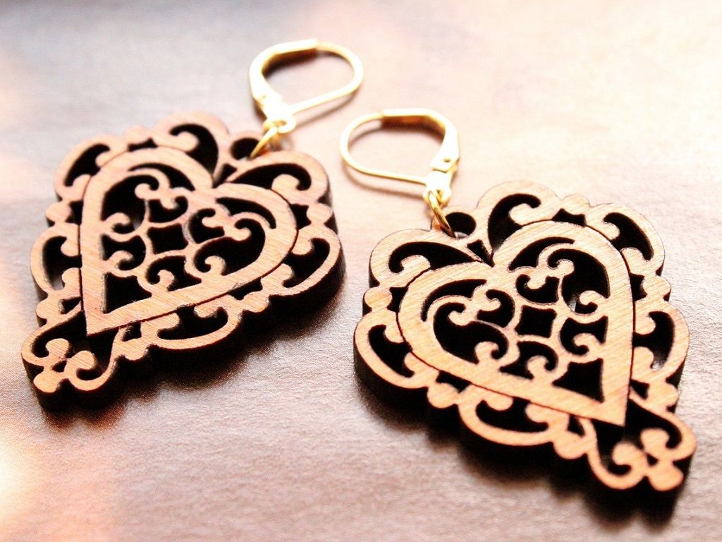 Laser Cut Wooden Heart Earrings Vector Free Vector File