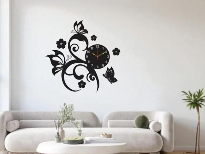 Laser Cut Flying Butterflies With Flowers Wall Clock