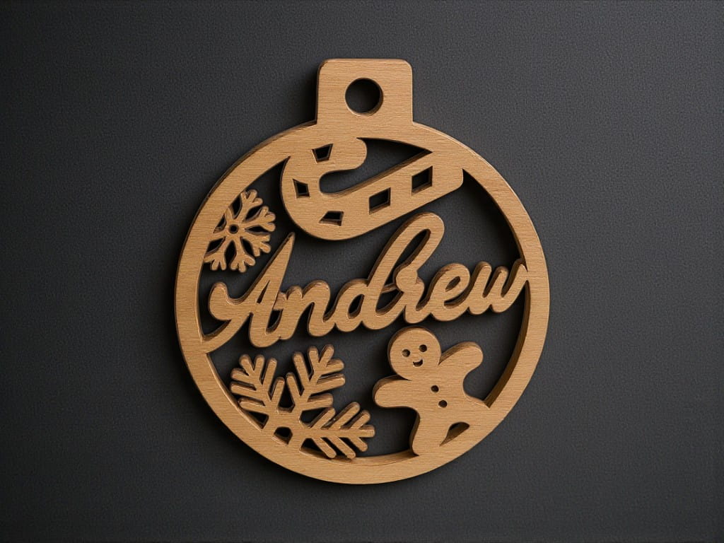 Laser Cut Gingerbread Man and Candy Cane Ornament with Name Andrew