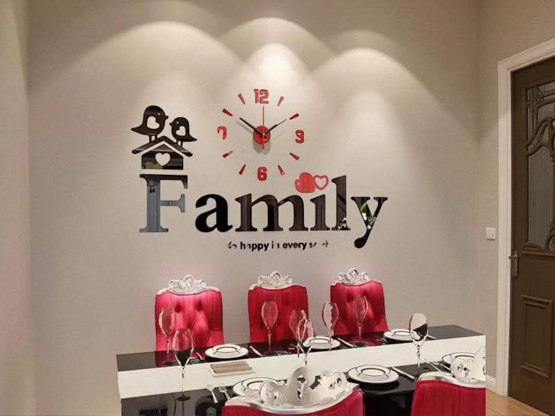 Laser Cut Family Big 3D DIY Sticker Acrylic Creative Wall Clock
