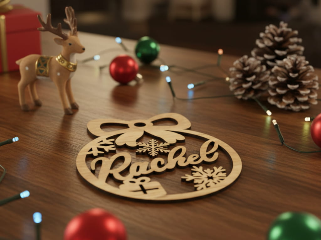 Laser Cut Personalized Christmas Bauble with Name Rachel