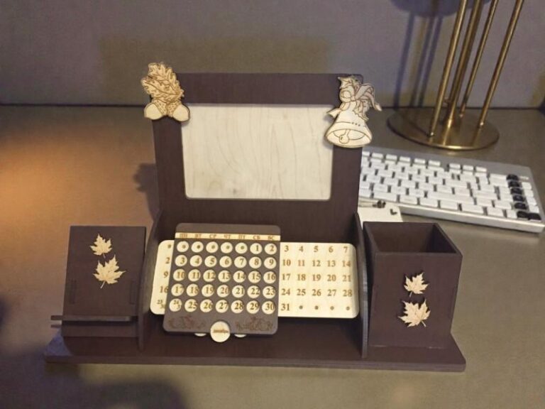 Laser Cut Desk Organizer With Mobile Stand Photo Frame Perpetual Calendar Pencil Holder 4mm