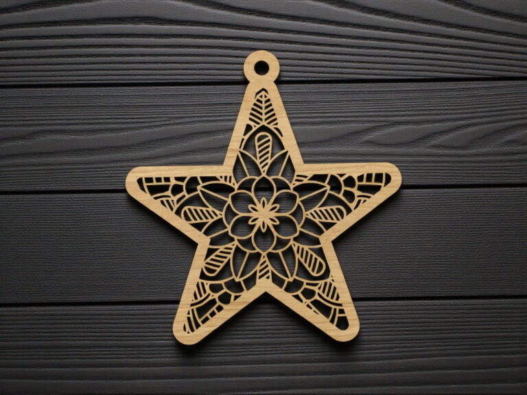 Laser Cut Star Christmas Ornament with Intricate Gear Design