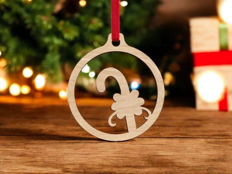 Laser Cut Candy Cane Christmas Tree Ball Vector