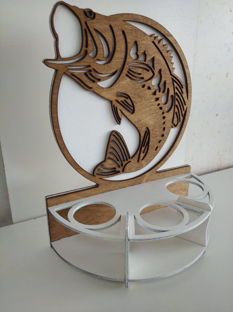 Bass Fish Glass Holder Laser Cut Wooden Glass Stand