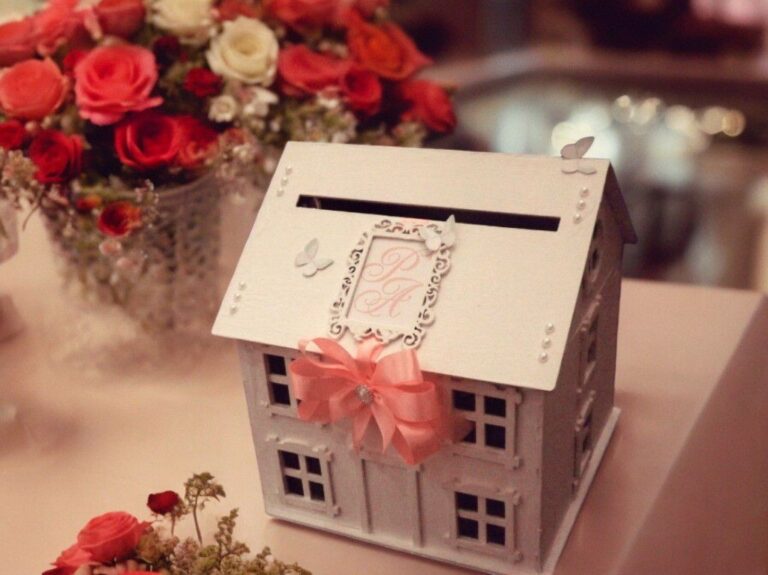 Laser Cut Wooden House Wedding Card Box Vector