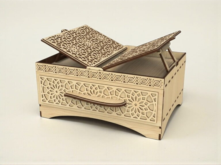 Laser Cut Decorative Wooden Holy Quran Box and Rehal