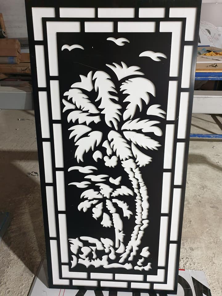 Laser Cut Palm Tree with Birds Art Design for Panel