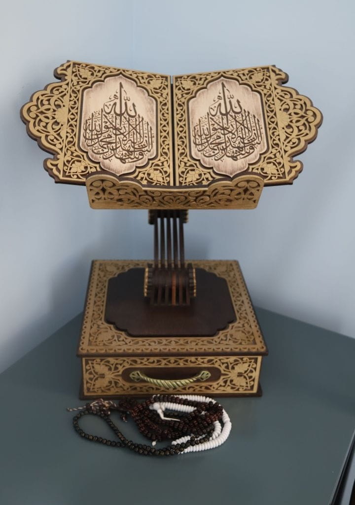 Laser Cut Height Adjustable Ornate Quran Stand with Drawer Box