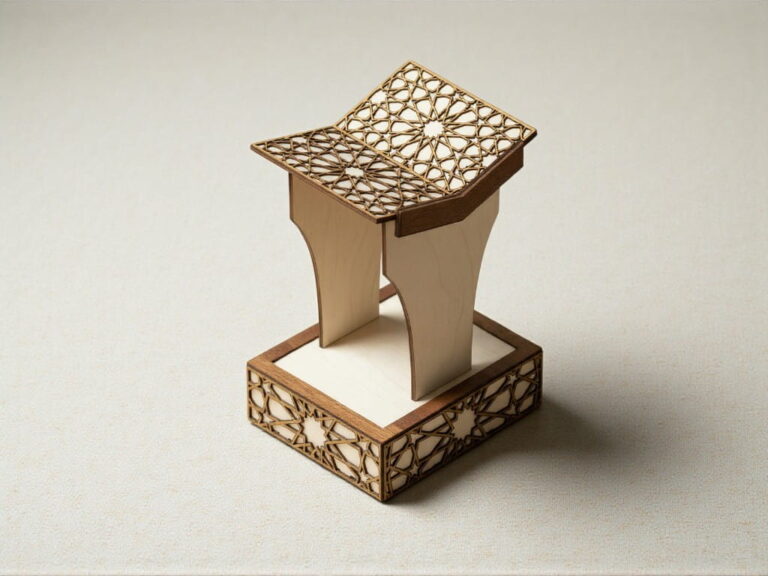 Laser Cut Rehal Quran Holder Stand with Intricate Islamic Geometric Patterns