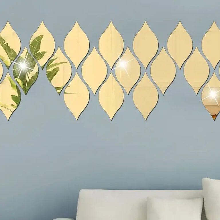 Laser Cut Acrylic Mirror Wall Stickers Vintage Oval Leaf Water Drops Design